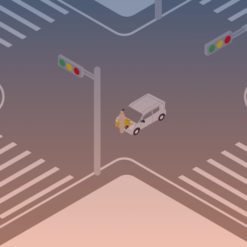 ・イラストに使用している各要素(車、背景、車、天候、信号、衝突地点など)は、代表的なイメージをイラスト化しており、色や形状等含め現実の事故の状況とは異なります。あくまで、事故のイメージとして参考までにご活用ください。