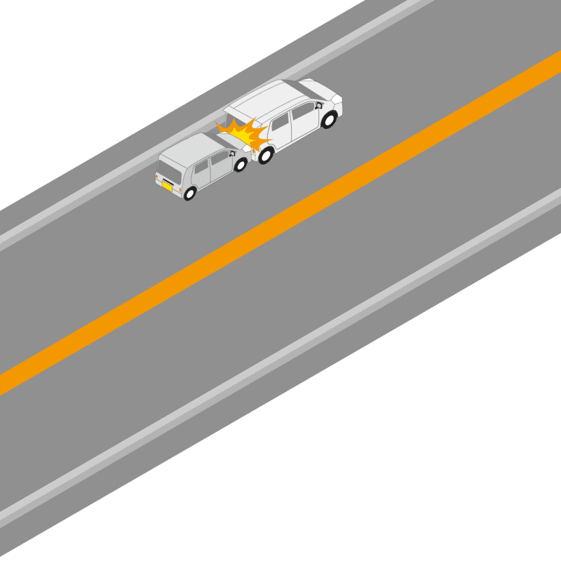・イラストに使用している各要素(車、背景、車、天候、信号、衝突地点など)は、代表的なイメージをイラスト化しており、色や形状等含め現実の事故の状況とは異なります。あくまで、事故のイメージとして参考までにご活用ください。