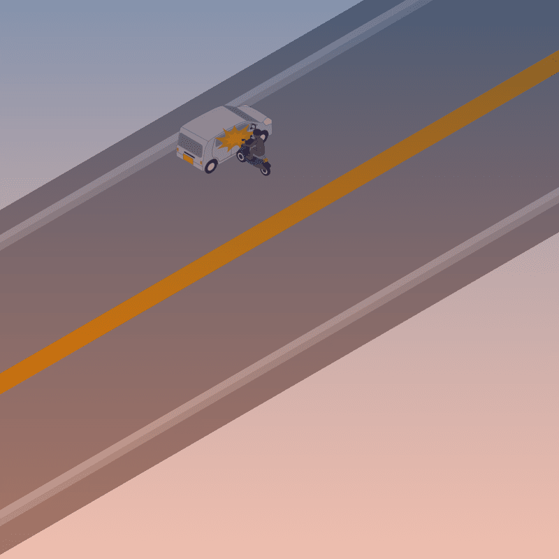 ・イラストに使用している各要素(車、背景、車、天候、信号、衝突地点など)は、代表的なイメージをイラスト化しており、色や形状等含め現実の事故の状況とは異なります。あくまで、事故のイメージとして参考までにご活用ください。