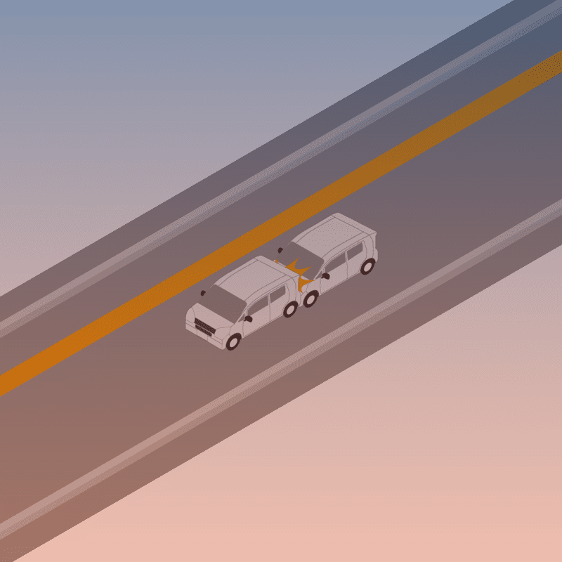 ・イラストに使用している各要素(車、背景、車、天候、信号、衝突地点など)は、代表的なイメージをイラスト化しており、色や形状等含め現実の事故の状況とは異なります。あくまで、事故のイメージとして参考までにご活用ください。