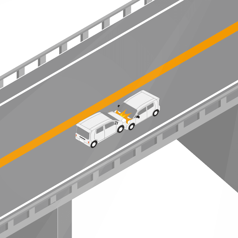 ・イラストに使用している各要素(車、背景、車、天候、信号、衝突地点など)は、代表的なイメージをイラスト化しており、色や形状等含め現実の事故の状況とは異なります。あくまで、事故のイメージとして参考までにご活用ください。