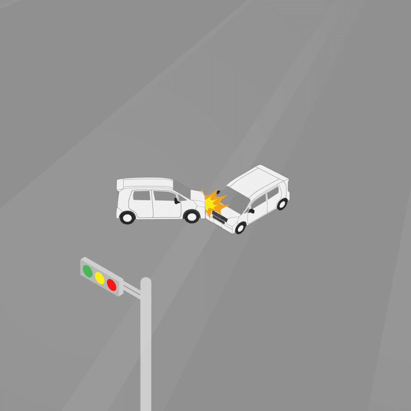 ・イラストに使用している各要素(車、背景、車、天候、信号、衝突地点など)は、代表的なイメージをイラスト化しており、色や形状等含め現実の事故の状況とは異なります。あくまで、事故のイメージとして参考までにご活用ください。