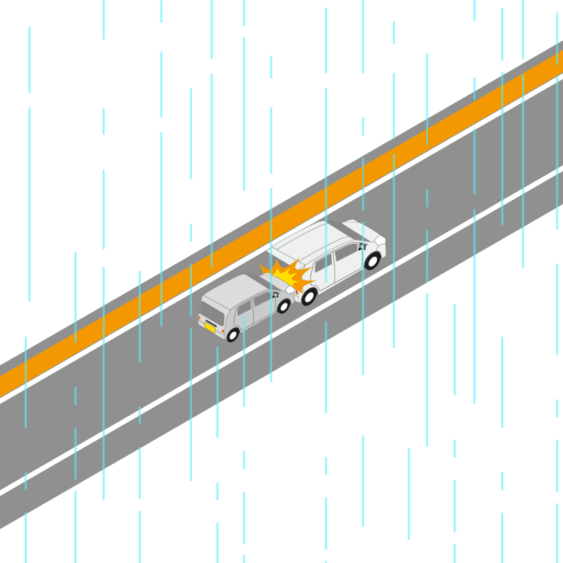 ・イラストに使用している各要素(車、背景、車、天候、信号、衝突地点など)は、代表的なイメージをイラスト化しており、色や形状等含め現実の事故の状況とは異なります。あくまで、事故のイメージとして参考までにご活用ください。