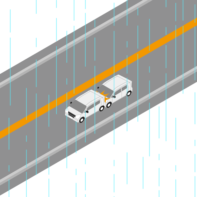 ・イラストに使用している各要素(車、背景、車、天候、信号、衝突地点など)は、代表的なイメージをイラスト化しており、色や形状等含め現実の事故の状況とは異なります。あくまで、事故のイメージとして参考までにご活用ください。