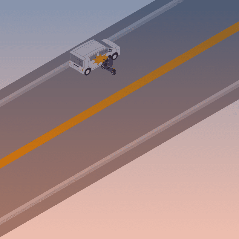 ・イラストに使用している各要素(車、背景、車、天候、信号、衝突地点など)は、代表的なイメージをイラスト化しており、色や形状等含め現実の事故の状況とは異なります。あくまで、事故のイメージとして参考までにご活用ください。