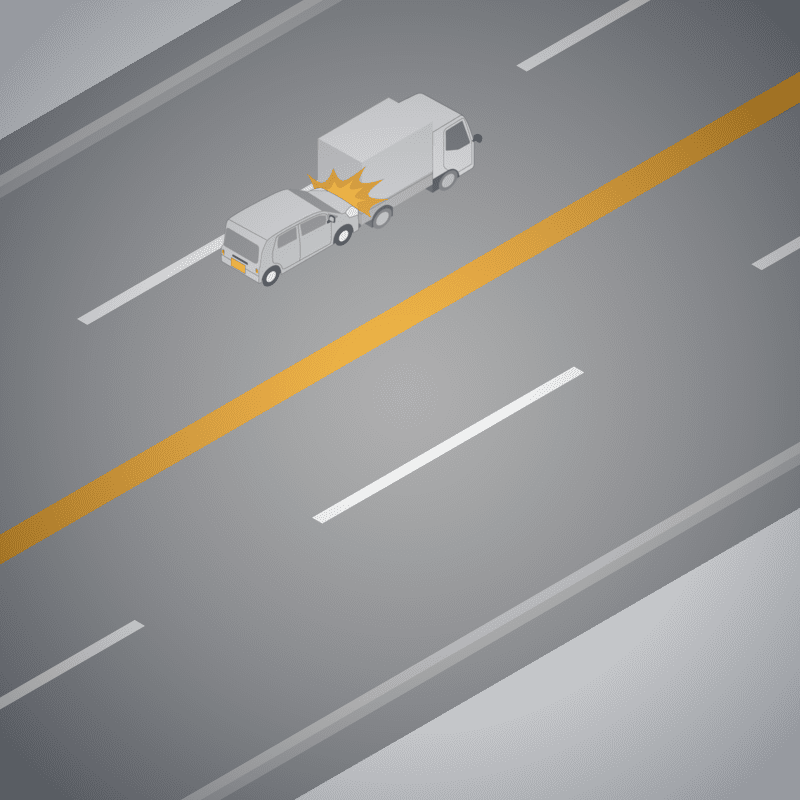 ・イラストに使用している各要素(車、背景、車、天候、信号、衝突地点など)は、代表的なイメージをイラスト化しており、色や形状等含め現実の事故の状況とは異なります。あくまで、事故のイメージとして参考までにご活用ください。