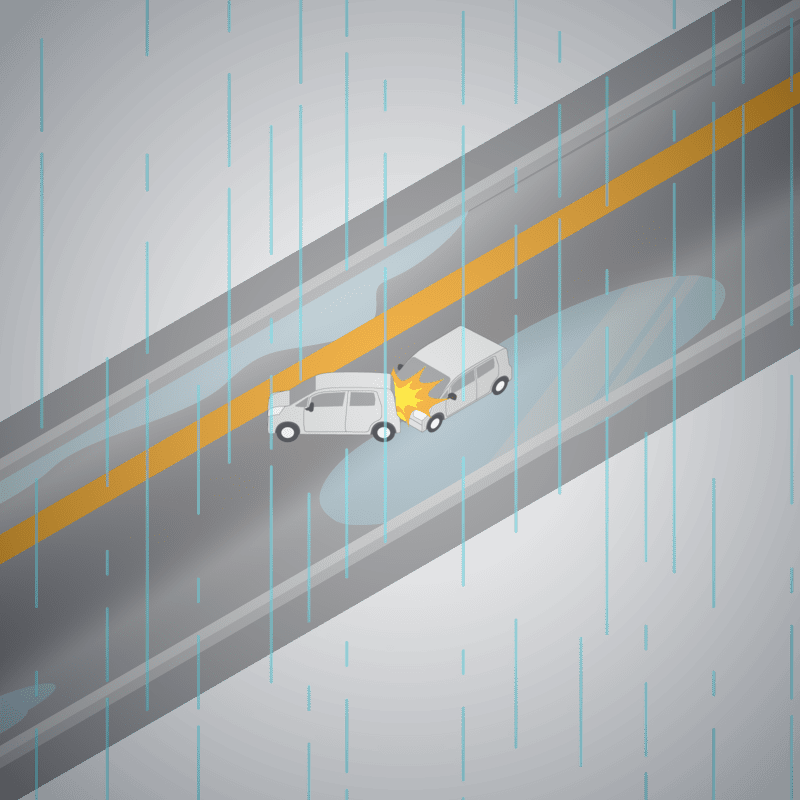 ・イラストに使用している各要素(車、背景、車、天候、信号、衝突地点など)は、代表的なイメージをイラスト化しており、色や形状等含め現実の事故の状況とは異なります。あくまで、事故のイメージとして参考までにご活用ください。