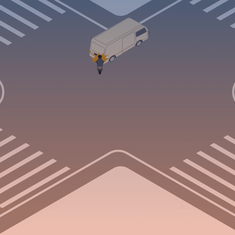 ・イラストに使用している各要素(車、背景、車、天候、信号、衝突地点など)は、代表的なイメージをイラスト化しており、色や形状等含め現実の事故の状況とは異なります。あくまで、事故のイメージとして参考までにご活用ください。