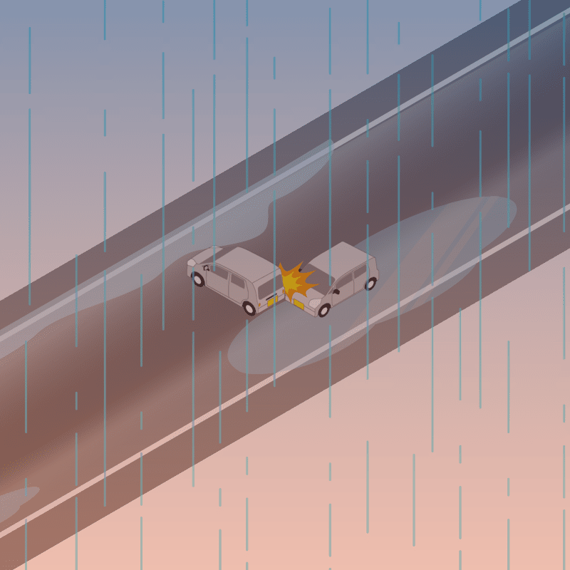・イラストに使用している各要素(車、背景、車、天候、信号、衝突地点など)は、代表的なイメージをイラスト化しており、色や形状等含め現実の事故の状況とは異なります。あくまで、事故のイメージとして参考までにご活用ください。