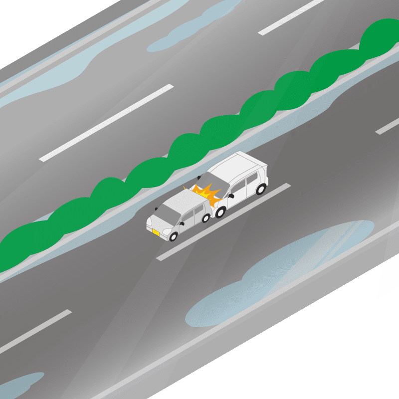・イラストに使用している各要素(車、背景、車、天候、信号、衝突地点など)は、代表的なイメージをイラスト化しており、色や形状等含め現実の事故の状況とは異なります。あくまで、事故のイメージとして参考までにご活用ください。