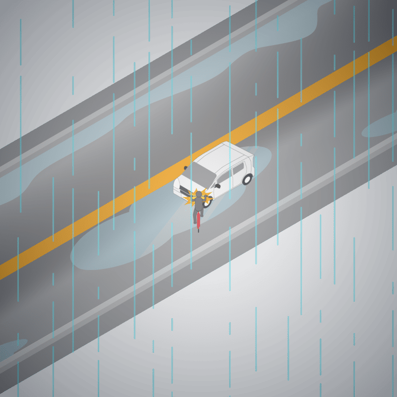 ・イラストに使用している各要素(車、背景、車、天候、信号、衝突地点など)は、代表的なイメージをイラスト化しており、色や形状等含め現実の事故の状況とは異なります。あくまで、事故のイメージとして参考までにご活用ください。