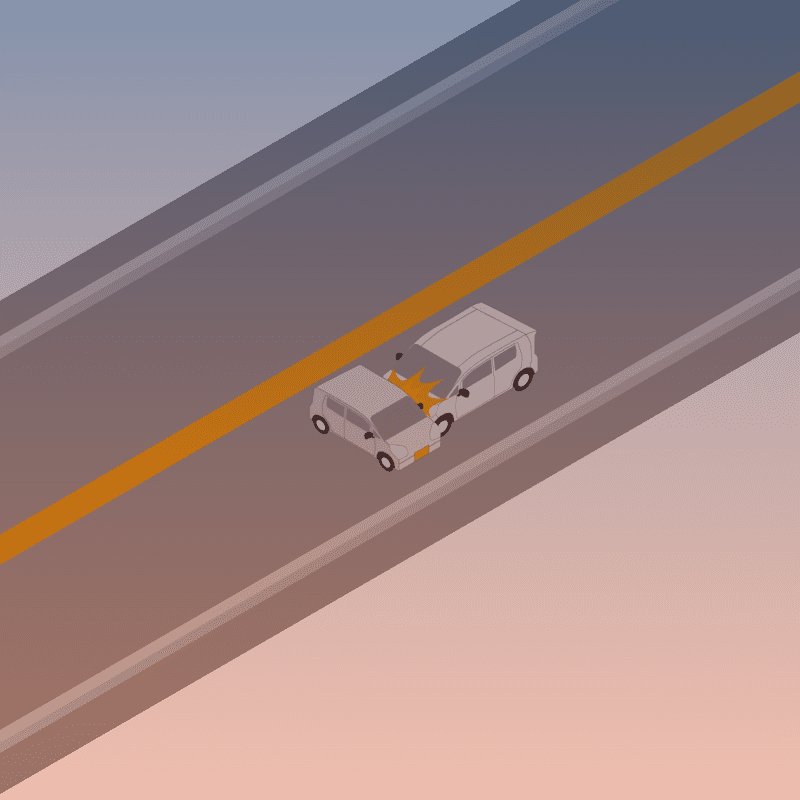 ・イラストに使用している各要素(車、背景、車、天候、信号、衝突地点など)は、代表的なイメージをイラスト化しており、色や形状等含め現実の事故の状況とは異なります。あくまで、事故のイメージとして参考までにご活用ください。