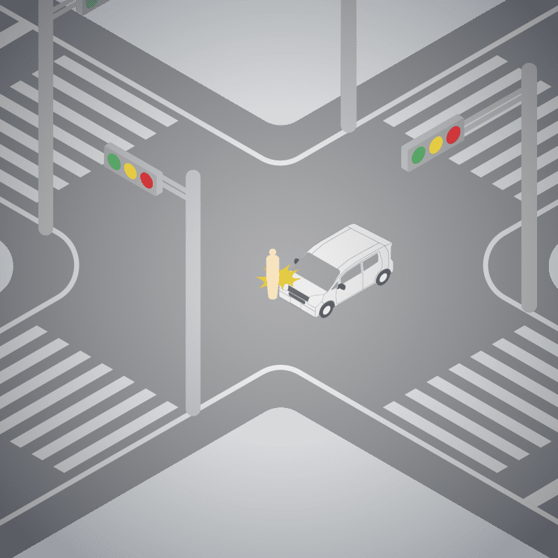 ・イラストに使用している各要素(車、背景、車、天候、信号、衝突地点など)は、代表的なイメージをイラスト化しており、色や形状等含め現実の事故の状況とは異なります。あくまで、事故のイメージとして参考までにご活用ください。