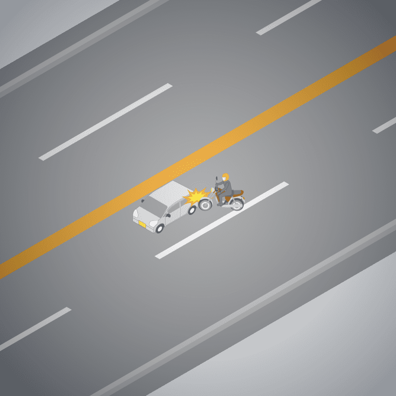 ・イラストに使用している各要素(車、背景、車、天候、信号、衝突地点など)は、代表的なイメージをイラスト化しており、色や形状等含め現実の事故の状況とは異なります。あくまで、事故のイメージとして参考までにご活用ください。