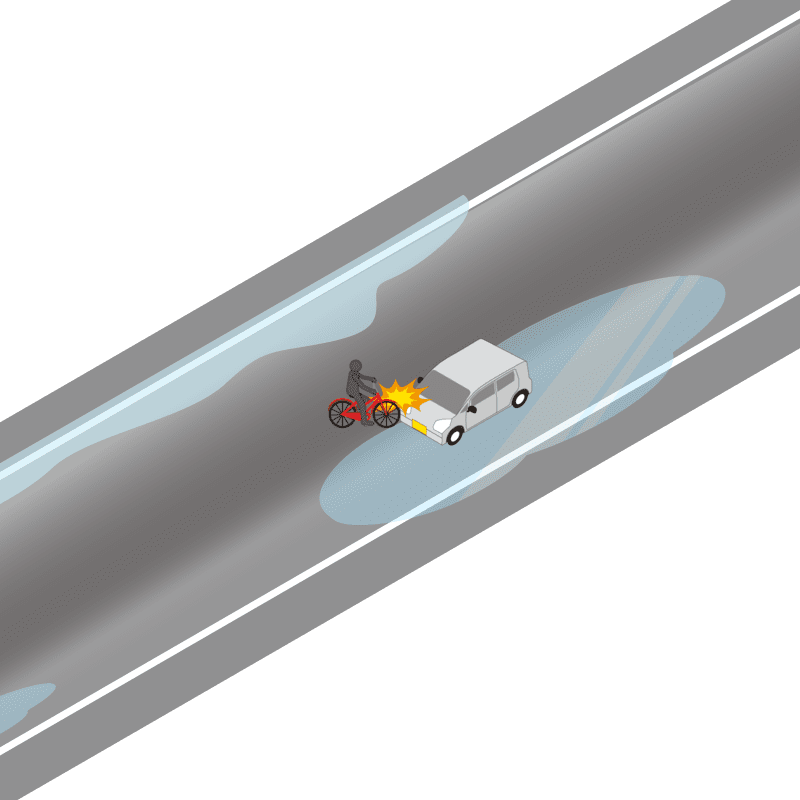 ・イラストに使用している各要素(車、背景、車、天候、信号、衝突地点など)は、代表的なイメージをイラスト化しており、色や形状等含め現実の事故の状況とは異なります。あくまで、事故のイメージとして参考までにご活用ください。