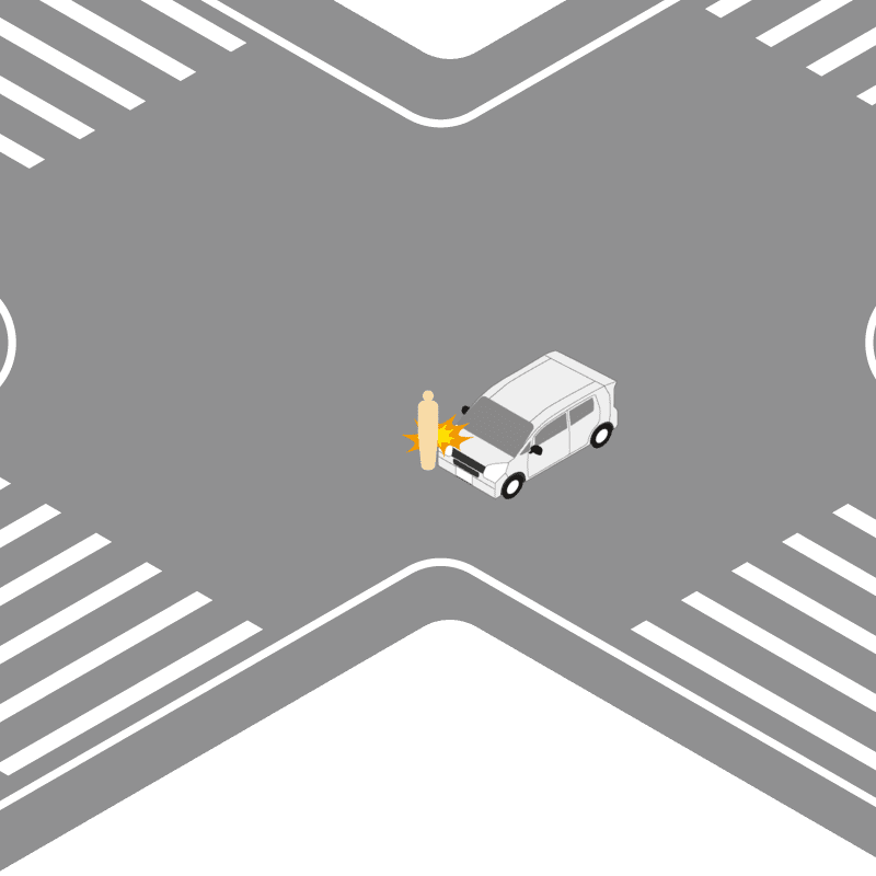 ・イラストに使用している各要素(車、背景、車、天候、信号、衝突地点など)は、代表的なイメージをイラスト化しており、色や形状等含め現実の事故の状況とは異なります。あくまで、事故のイメージとして参考までにご活用ください。