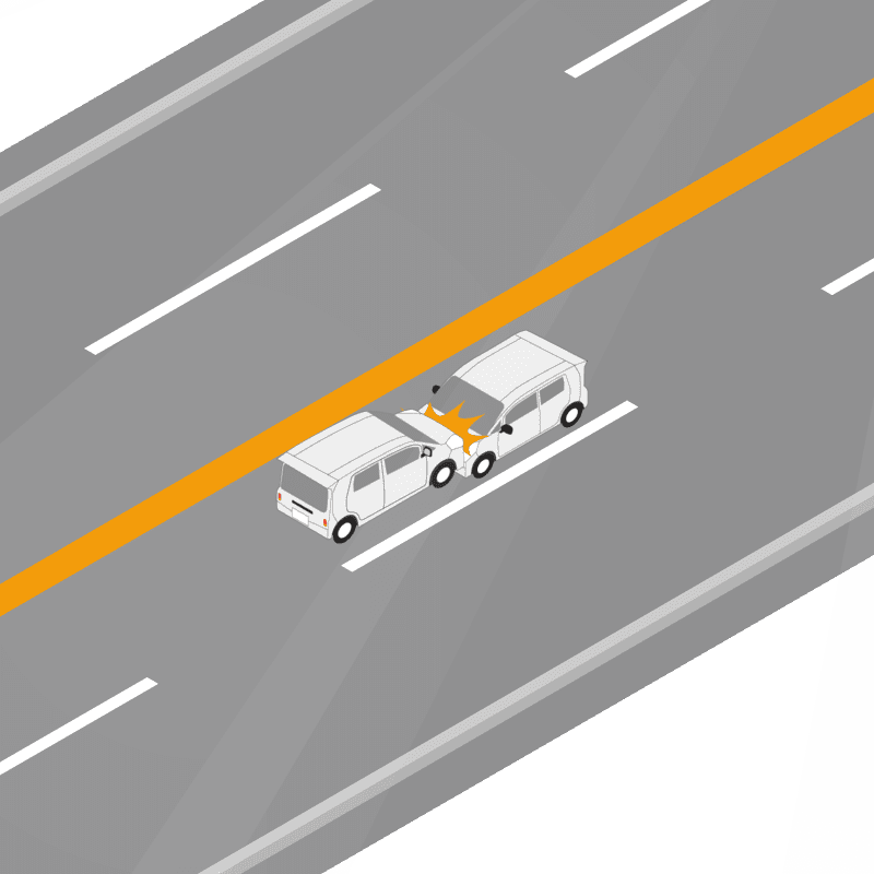 ・イラストに使用している各要素(車、背景、車、天候、信号、衝突地点など)は、代表的なイメージをイラスト化しており、色や形状等含め現実の事故の状況とは異なります。あくまで、事故のイメージとして参考までにご活用ください。