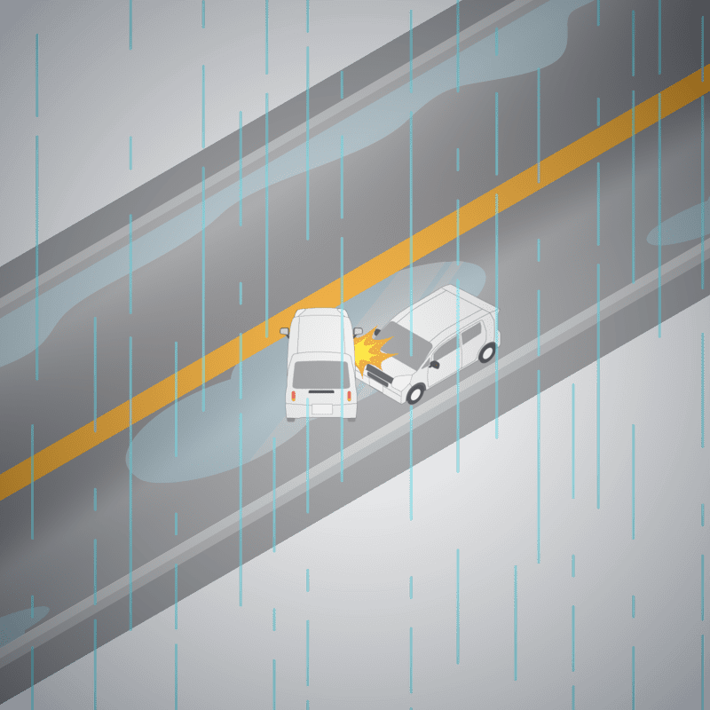 ・イラストに使用している各要素(車、背景、車、天候、信号、衝突地点など)は、代表的なイメージをイラスト化しており、色や形状等含め現実の事故の状況とは異なります。あくまで、事故のイメージとして参考までにご活用ください。