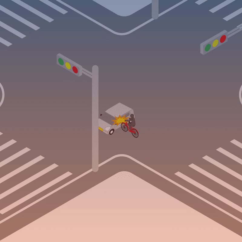 ・イラストに使用している各要素(車、背景、車、天候、信号、衝突地点など)は、代表的なイメージをイラスト化しており、色や形状等含め現実の事故の状況とは異なります。あくまで、事故のイメージとして参考までにご活用ください。