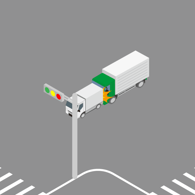 ・イラストに使用している各要素(車、背景、車、天候、信号、衝突地点など)は、代表的なイメージをイラスト化しており、色や形状等含め現実の事故の状況とは異なります。あくまで、事故のイメージとして参考までにご活用ください。