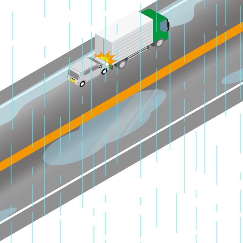・イラストに使用している各要素(車、背景、車、天候、信号、衝突地点など)は、代表的なイメージをイラスト化しており、色や形状等含め現実の事故の状況とは異なります。あくまで、事故のイメージとして参考までにご活用ください。