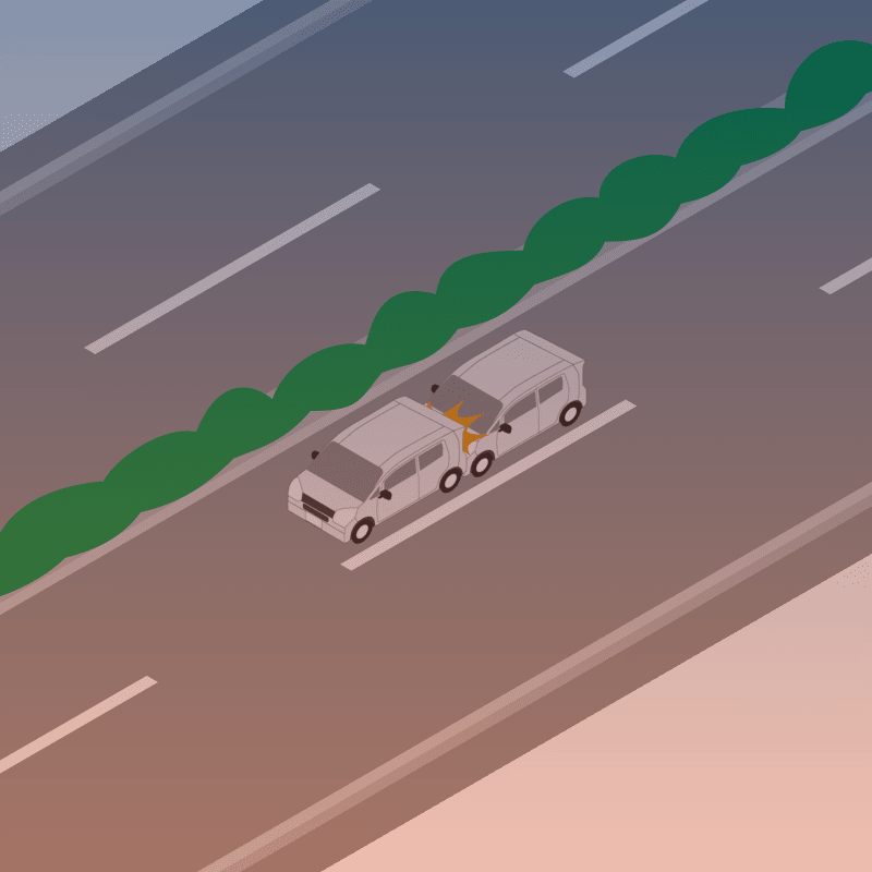・イラストに使用している各要素(車、背景、車、天候、信号、衝突地点など)は、代表的なイメージをイラスト化しており、色や形状等含め現実の事故の状況とは異なります。あくまで、事故のイメージとして参考までにご活用ください。