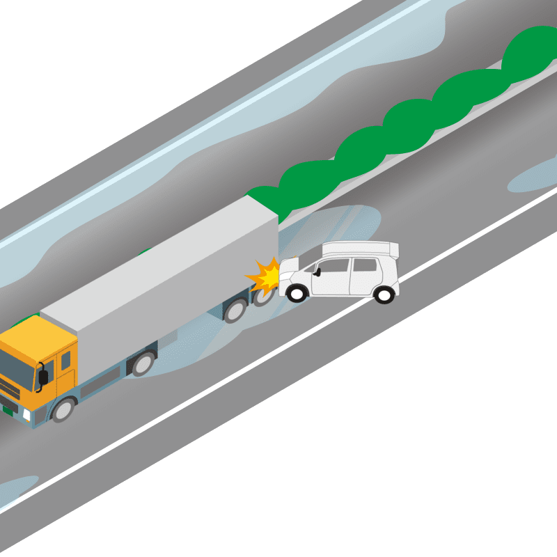 ・イラストに使用している各要素(車、背景、車、天候、信号、衝突地点など)は、代表的なイメージをイラスト化しており、色や形状等含め現実の事故の状況とは異なります。あくまで、事故のイメージとして参考までにご活用ください。