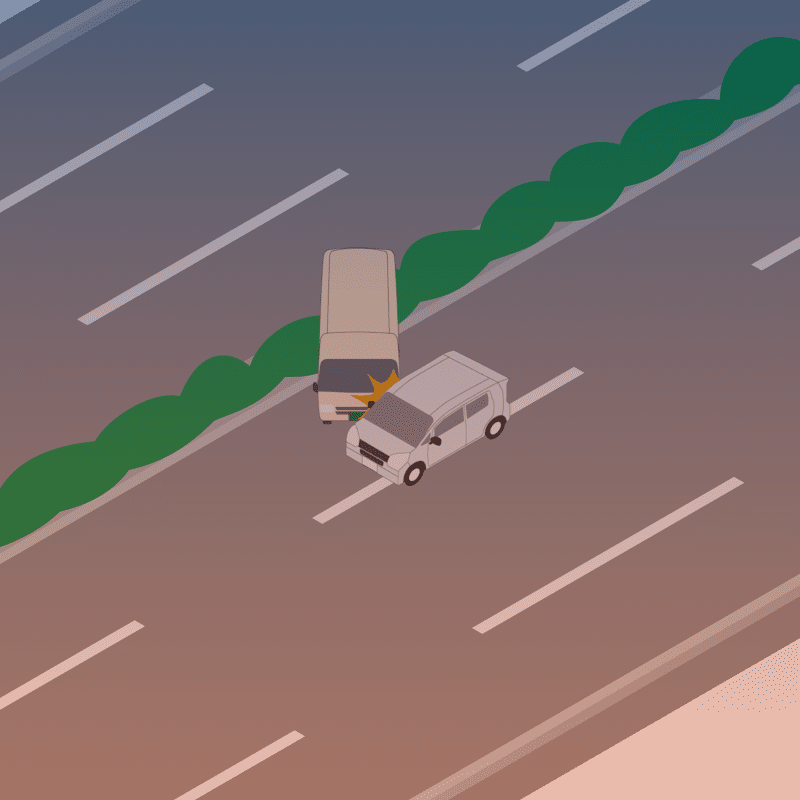 ・イラストに使用している各要素(車、背景、車、天候、信号、衝突地点など)は、代表的なイメージをイラスト化しており、色や形状等含め現実の事故の状況とは異なります。あくまで、事故のイメージとして参考までにご活用ください。
