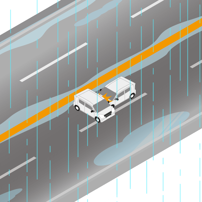 ・イラストに使用している各要素(車、背景、車、天候、信号、衝突地点など)は、代表的なイメージをイラスト化しており、色や形状等含め現実の事故の状況とは異なります。あくまで、事故のイメージとして参考までにご活用ください。