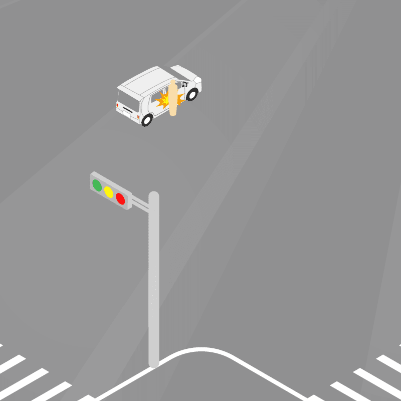 ・イラストに使用している各要素(車、背景、車、天候、信号、衝突地点など)は、代表的なイメージをイラスト化しており、色や形状等含め現実の事故の状況とは異なります。あくまで、事故のイメージとして参考までにご活用ください。