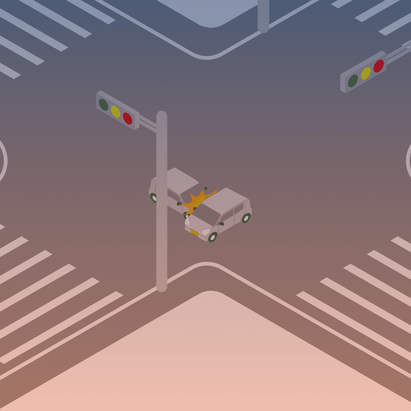 ・イラストに使用している各要素(車、背景、車、天候、信号、衝突地点など)は、代表的なイメージをイラスト化しており、色や形状等含め現実の事故の状況とは異なります。あくまで、事故のイメージとして参考までにご活用ください。