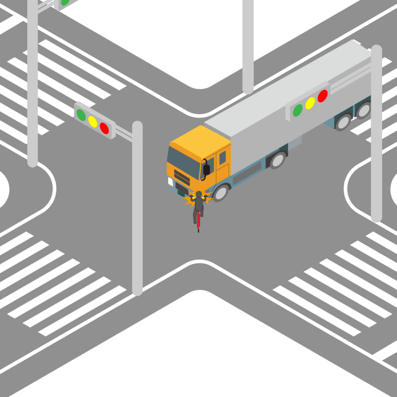 ・イラストに使用している各要素(車、背景、車、天候、信号、衝突地点など)は、代表的なイメージをイラスト化しており、色や形状等含め現実の事故の状況とは異なります。あくまで、事故のイメージとして参考までにご活用ください。
