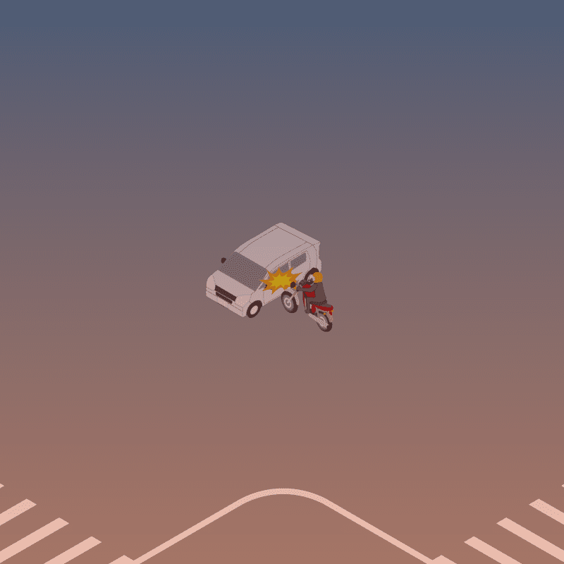 ・イラストに使用している各要素(車、背景、車、天候、信号、衝突地点など)は、代表的なイメージをイラスト化しており、色や形状等含め現実の事故の状況とは異なります。あくまで、事故のイメージとして参考までにご活用ください。