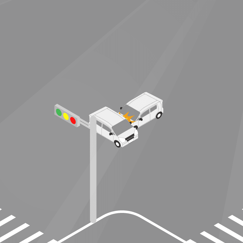 ・イラストに使用している各要素(車、背景、車、天候、信号、衝突地点など)は、代表的なイメージをイラスト化しており、色や形状等含め現実の事故の状況とは異なります。あくまで、事故のイメージとして参考までにご活用ください。