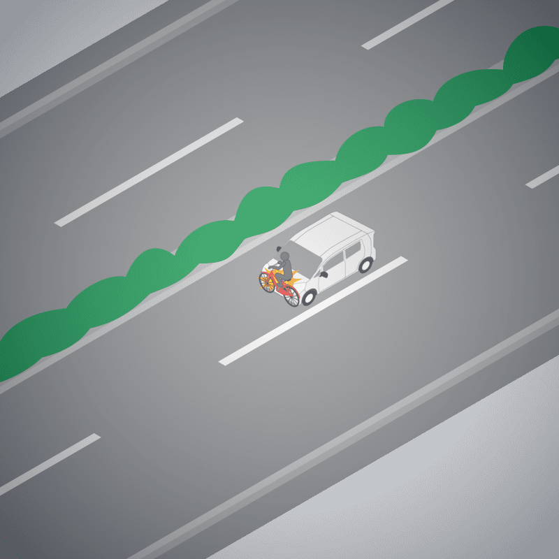 ・イラストに使用している各要素(車、背景、車、天候、信号、衝突地点など)は、代表的なイメージをイラスト化しており、色や形状等含め現実の事故の状況とは異なります。あくまで、事故のイメージとして参考までにご活用ください。