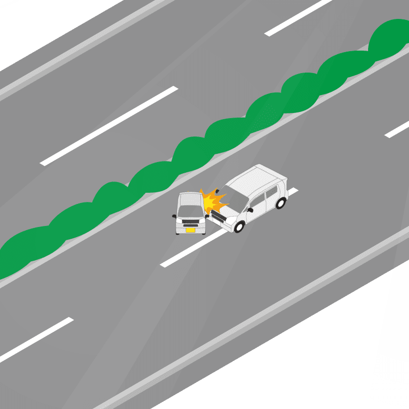 ・イラストに使用している各要素(車、背景、車、天候、信号、衝突地点など)は、代表的なイメージをイラスト化しており、色や形状等含め現実の事故の状況とは異なります。あくまで、事故のイメージとして参考までにご活用ください。