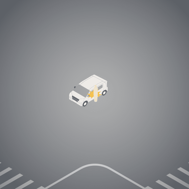 ・イラストに使用している各要素(車、背景、車、天候、信号、衝突地点など)は、代表的なイメージをイラスト化しており、色や形状等含め現実の事故の状況とは異なります。あくまで、事故のイメージとして参考までにご活用ください。
