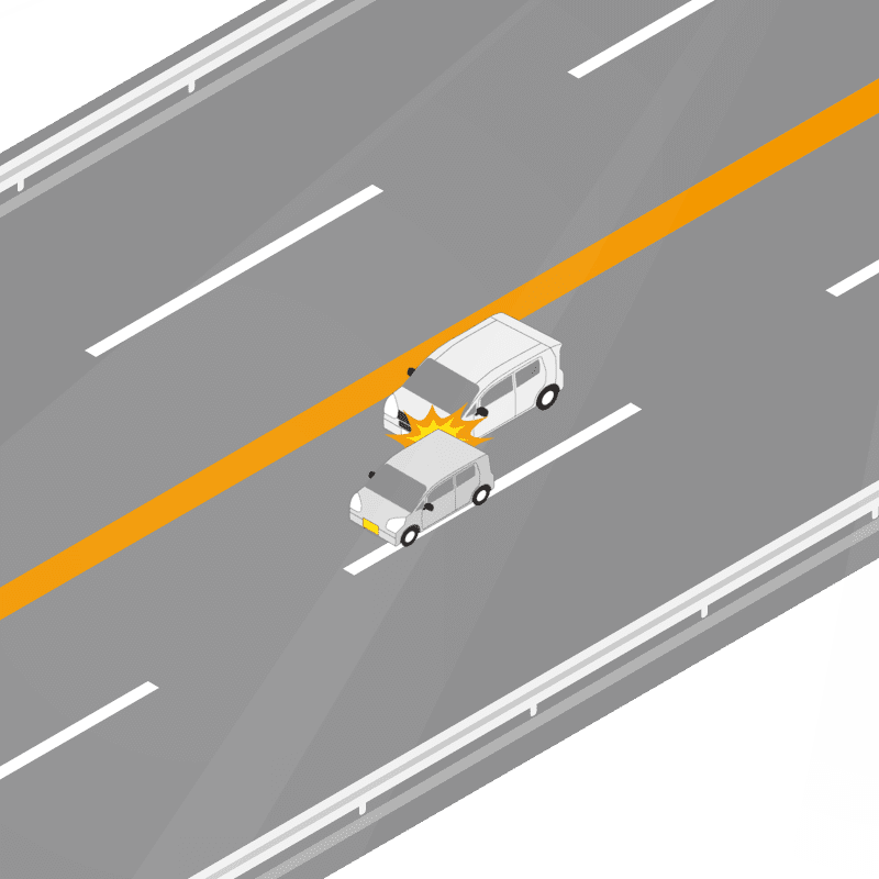 ・イラストに使用している各要素(車、背景、車、天候、信号、衝突地点など)は、代表的なイメージをイラスト化しており、色や形状等含め現実の事故の状況とは異なります。あくまで、事故のイメージとして参考までにご活用ください。