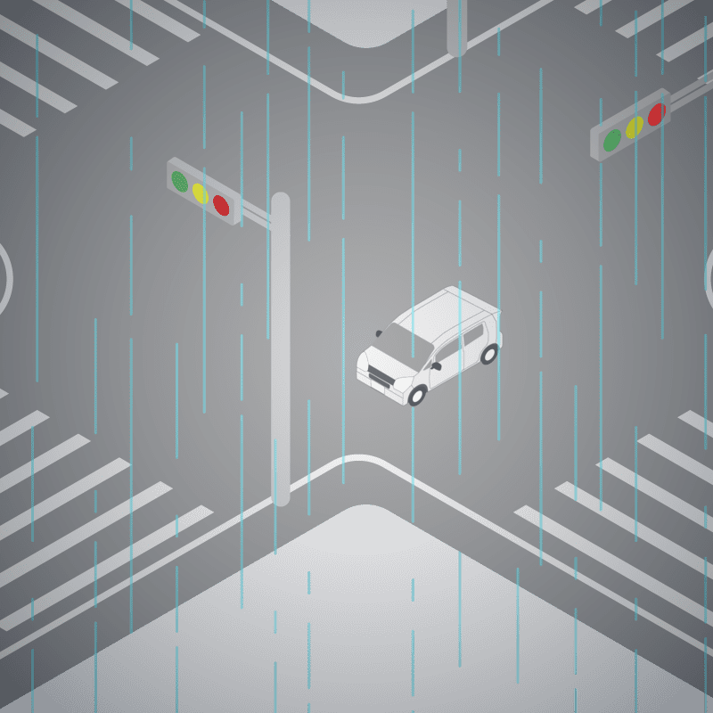 ・イラストに使用している各要素(車、背景、車、天候、信号、衝突地点など)は、代表的なイメージをイラスト化しており、色や形状等含め現実の事故の状況とは異なります。あくまで、事故のイメージとして参考までにご活用ください。