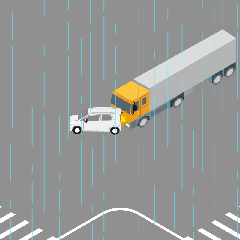 ・イラストに使用している各要素(車、背景、車、天候、信号、衝突地点など)は、代表的なイメージをイラスト化しており、色や形状等含め現実の事故の状況とは異なります。あくまで、事故のイメージとして参考までにご活用ください。
