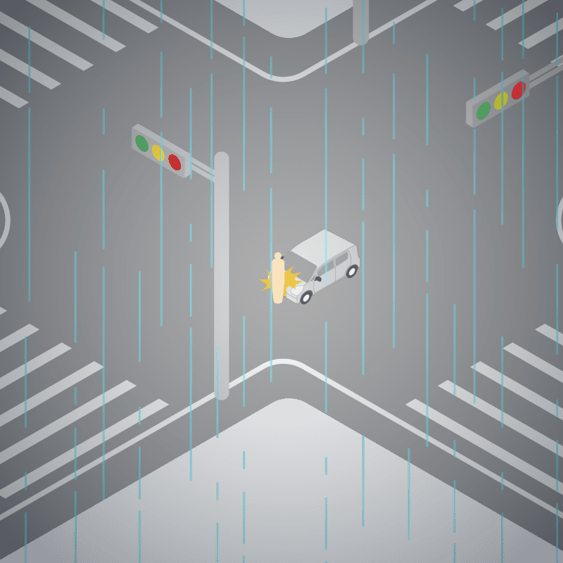 ・イラストに使用している各要素(車、背景、車、天候、信号、衝突地点など)は、代表的なイメージをイラスト化しており、色や形状等含め現実の事故の状況とは異なります。あくまで、事故のイメージとして参考までにご活用ください。