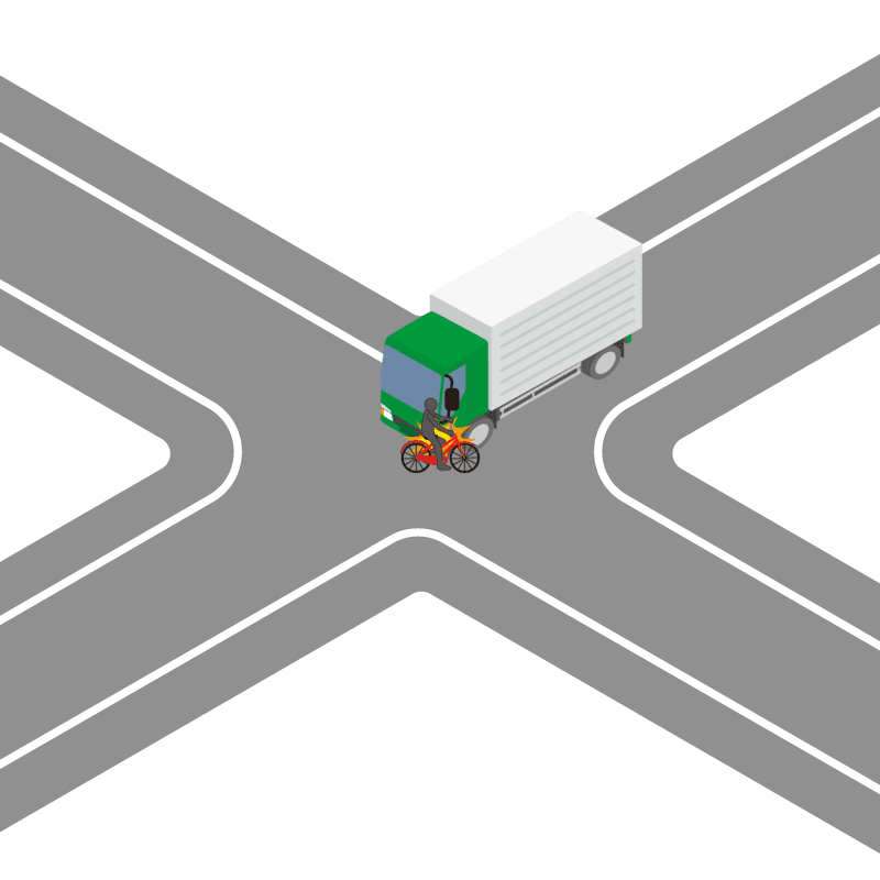 ・イラストに使用している各要素(車、背景、車、天候、信号、衝突地点など)は、代表的なイメージをイラスト化しており、色や形状等含め現実の事故の状況とは異なります。あくまで、事故のイメージとして参考までにご活用ください。