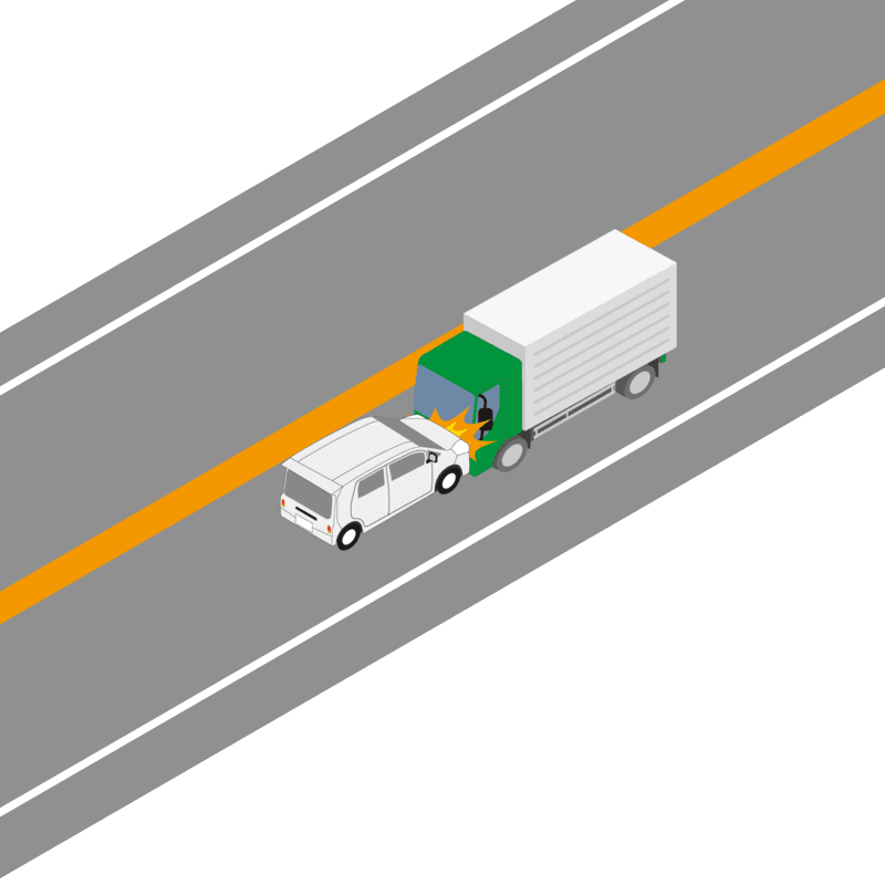 ・イラストに使用している各要素(車、背景、車、天候、信号、衝突地点など)は、代表的なイメージをイラスト化しており、色や形状等含め現実の事故の状況とは異なります。あくまで、事故のイメージとして参考までにご活用ください。