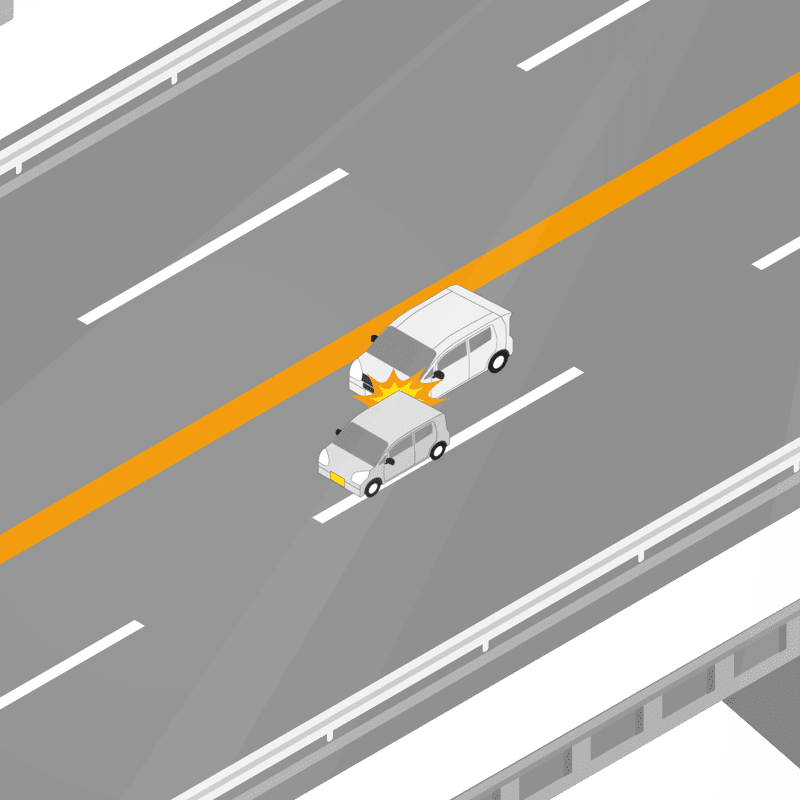 ・イラストに使用している各要素(車、背景、車、天候、信号、衝突地点など)は、代表的なイメージをイラスト化しており、色や形状等含め現実の事故の状況とは異なります。あくまで、事故のイメージとして参考までにご活用ください。