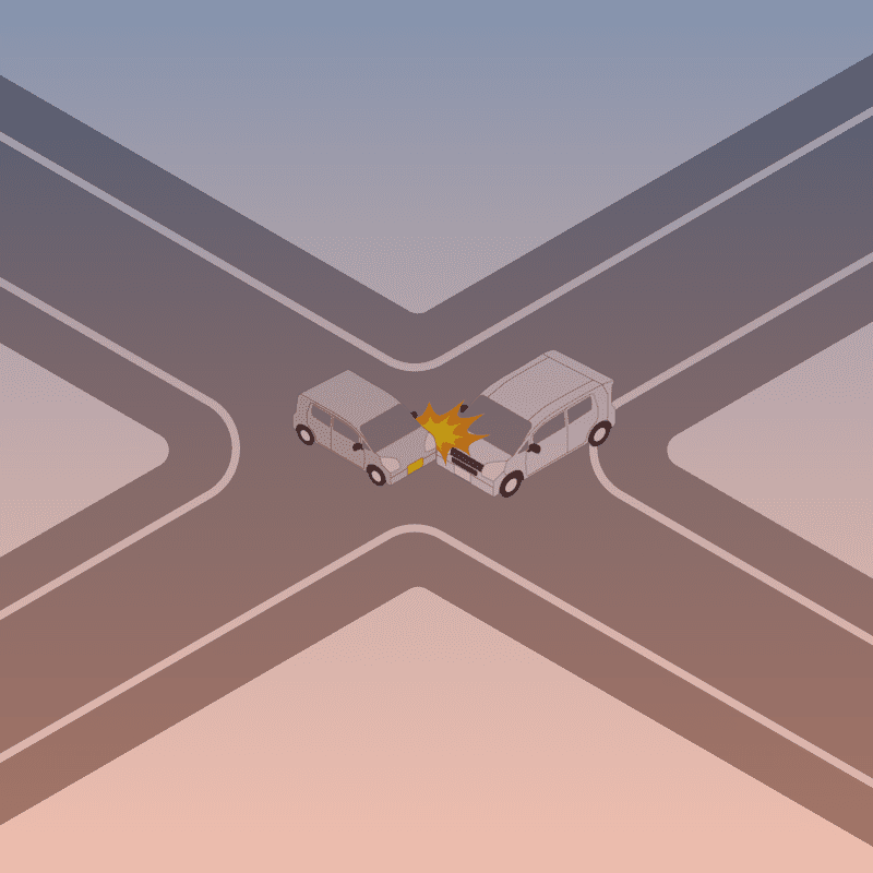 ・イラストに使用している各要素(車、背景、車、天候、信号、衝突地点など)は、代表的なイメージをイラスト化しており、色や形状等含め現実の事故の状況とは異なります。あくまで、事故のイメージとして参考までにご活用ください。