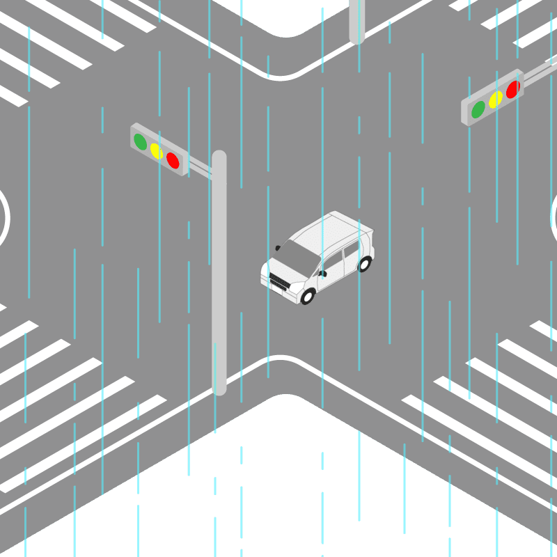 ・イラストに使用している各要素(車、背景、車、天候、信号、衝突地点など)は、代表的なイメージをイラスト化しており、色や形状等含め現実の事故の状況とは異なります。あくまで、事故のイメージとして参考までにご活用ください。