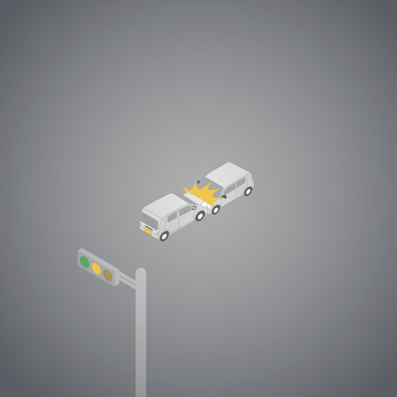 ・イラストに使用している各要素(車、背景、車、天候、信号、衝突地点など)は、代表的なイメージをイラスト化しており、色や形状等含め現実の事故の状況とは異なります。あくまで、事故のイメージとして参考までにご活用ください。