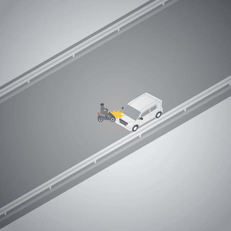 ・イラストに使用している各要素(車、背景、車、天候、信号、衝突地点など)は、代表的なイメージをイラスト化しており、色や形状等含め現実の事故の状況とは異なります。あくまで、事故のイメージとして参考までにご活用ください。
