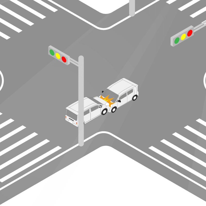 ・イラストに使用している各要素(車、背景、車、天候、信号、衝突地点など)は、代表的なイメージをイラスト化しており、色や形状等含め現実の事故の状況とは異なります。あくまで、事故のイメージとして参考までにご活用ください。