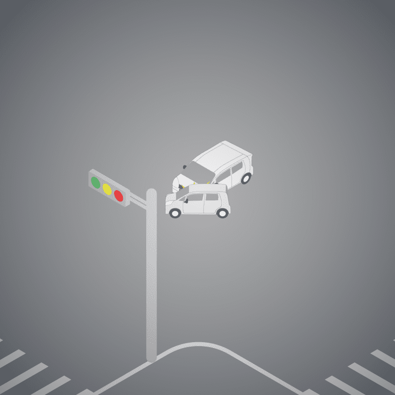・イラストに使用している各要素(車、背景、車、天候、信号、衝突地点など)は、代表的なイメージをイラスト化しており、色や形状等含め現実の事故の状況とは異なります。あくまで、事故のイメージとして参考までにご活用ください。